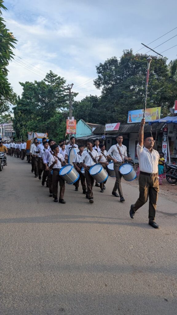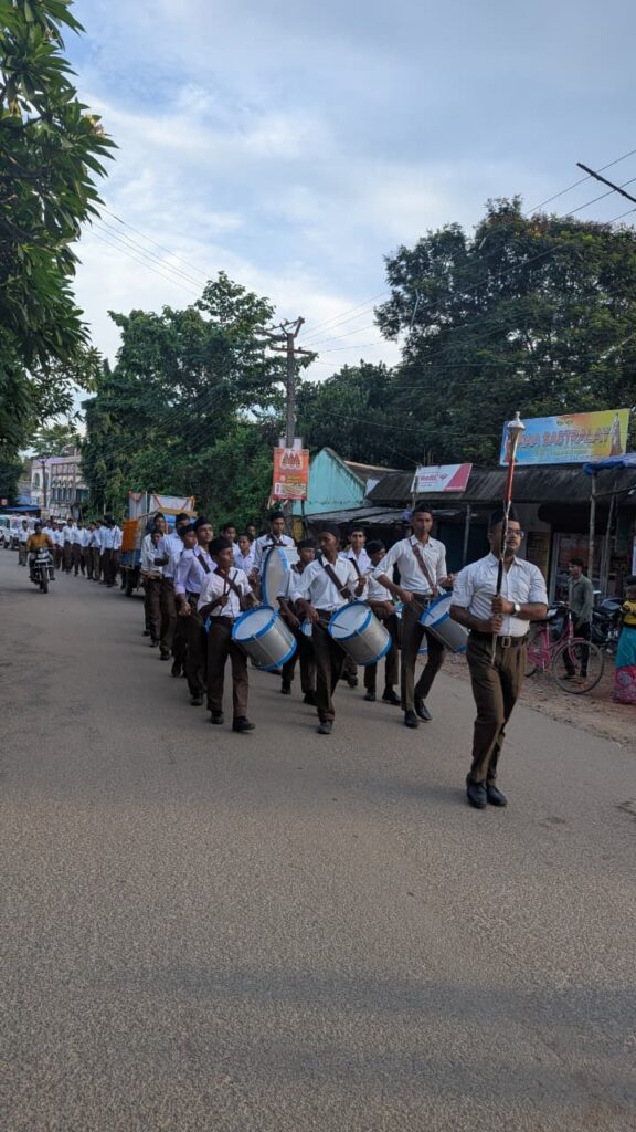 उमेश कांत गिरि / घाटशिला: बहरागोड़ा में राष्ट्रीय स्वयंसेवक संघ की ओर से शताब्दी वर्ष के उपलक्ष्य पर पथ संचलन एवं विजयादशमी उत्सव सह शस्त्र पूजन कार्यक्रम का आयोजन किया गया। संघ का पथ संचलन काली संघ मैदान से प्रारंभ होकर पूरे बाजार का भ्रमण कर वापस काली संघ मैदान में समाप्त हुआ।