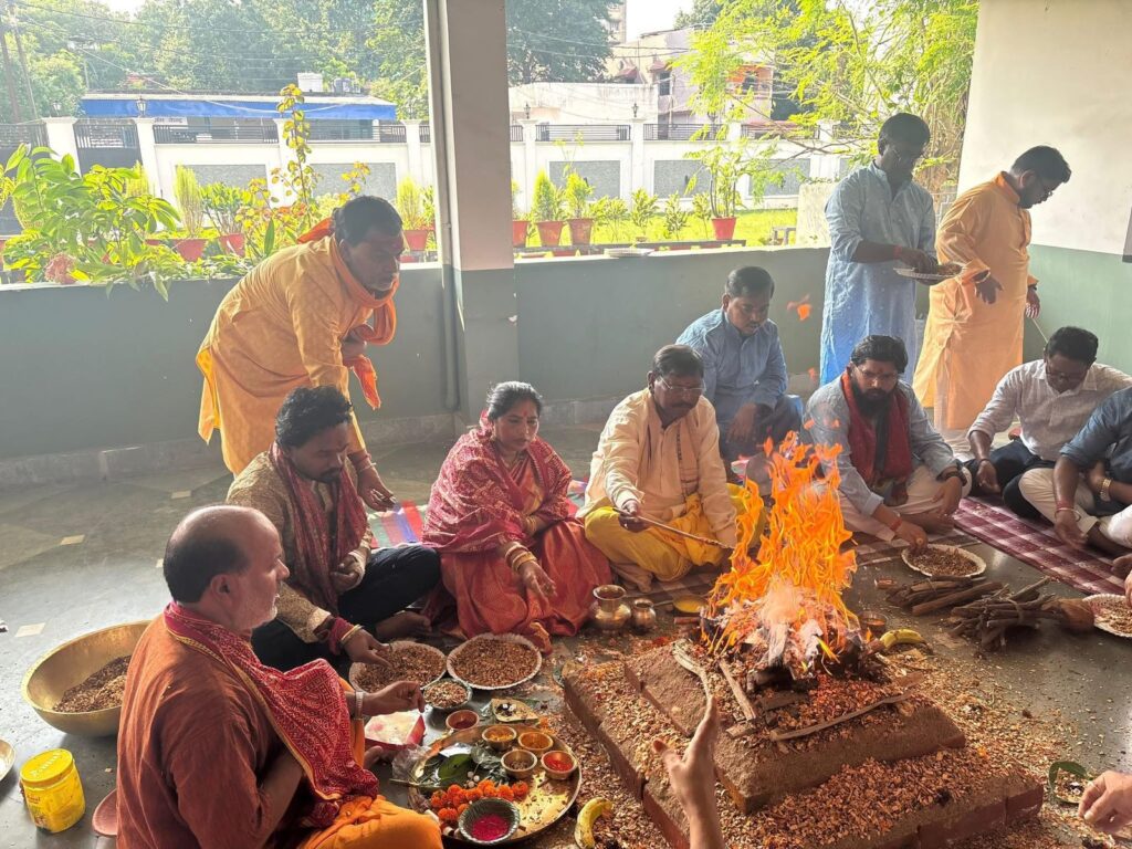 जमशेदपुर,, झारखंड: जमशेदपुर स्थित घोड़ाबाँधा निवास पर आज महानवमी के पावन अवसर पर पूर्व मुख्यमंत्री श्री अर्जुन मुंडा जी एवं उनकी धर्मपत्नी श्रीमती मीरा मुंडा जी ने सपरिवार कन्या पूजन कर माँ आदिशक्ति का आशीर्वाद प्राप्त किया। इस अवसर पर देवी स्वरूपा बालिकाओं का स्वागत कर उन्हें सुस्वादिष्ट भोजन कराया गया तथा उपहार भेंटकर उनका आशीर्वाद लिया।