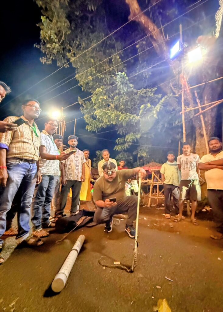 सूचना पाकर सर्पमित्र अशराफुल शेख मौके पर पहुंचे और बिना किसी को नुकसान पहुँचाए सांप का सफलतापूर्वक रेस्क्यू कर उसे जंगल में छोड़ दिया.