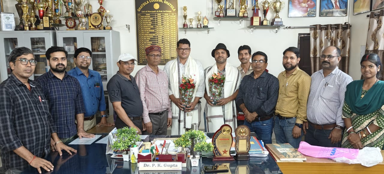 उमेश कांत गिरि / घाटशिला: घाटशिला महाविद्यालय में आज मंगलवार 14 अक्टूबर 2025 को उत्सव का माहौल रहा। कोल्हान विश्वविद्यालय शिक्षक संघ के निर्वाचन 2025 के चुनाव में घाटशिला महाविद्यालय के राजनीति विज्ञान के अध्यक्ष प्रो इंदल पासवान अध्यक्ष के रूप में और राजनीति विज्ञान के ही शिक्षक प्रो विकाश मुंडा सचिव के पद पर चुने जाने पर घाटशिला महाविद्यालय शिक्षक संघ और महाविद्यालय के प्राचार्य डॉ पीके गुप्ता ने एक समारोह आयोजित कर दोनों को सम्मानित किया।