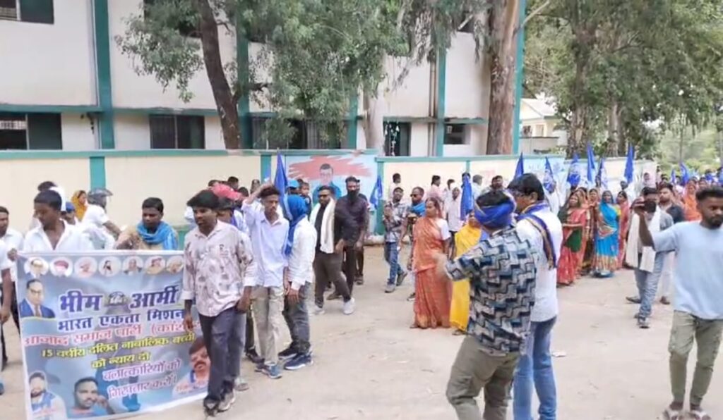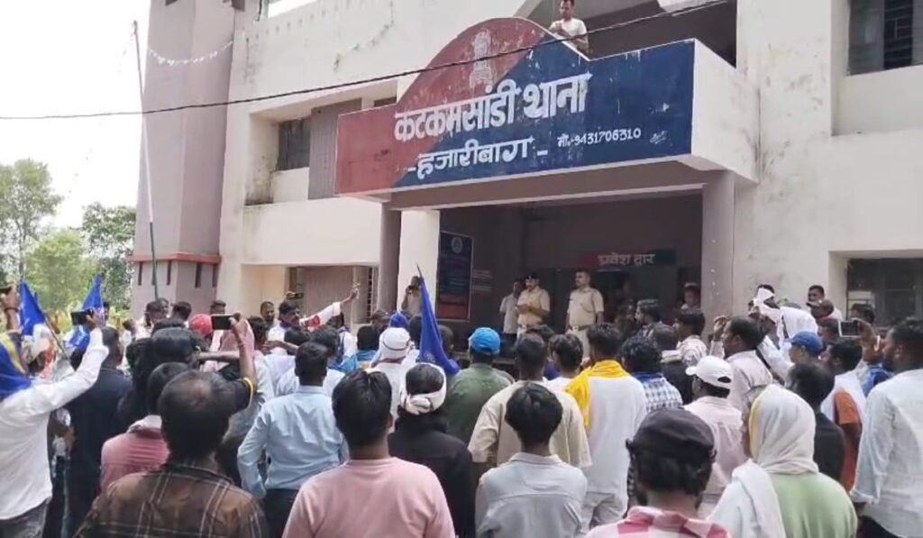हजारीबाग : जिले के कटकमसांडी थाना क्षेत्र में 7 जून को एक 15 वर्षीय नाबालिग बच्ची के साथ कथित रूप से सामूहिक बलात्कार की घटना के विरोध में सोमवार को भीम आर्मी ने जोरदार प्रदर्शन किया। प्रदेश अध्यक्ष संजय रविराज के नेतृत्व में सैकड़ों की संख्या में संगठन के सदस्य कटकमसांडी थाना पहुंचे और आरोपी की तत्काल गिरफ्तारी की मांग को लेकर थाना का घेराव किया ,प्रदर्शन में महिलाओं और पुरुषों की बड़ी भागीदारी देखने को मिली।