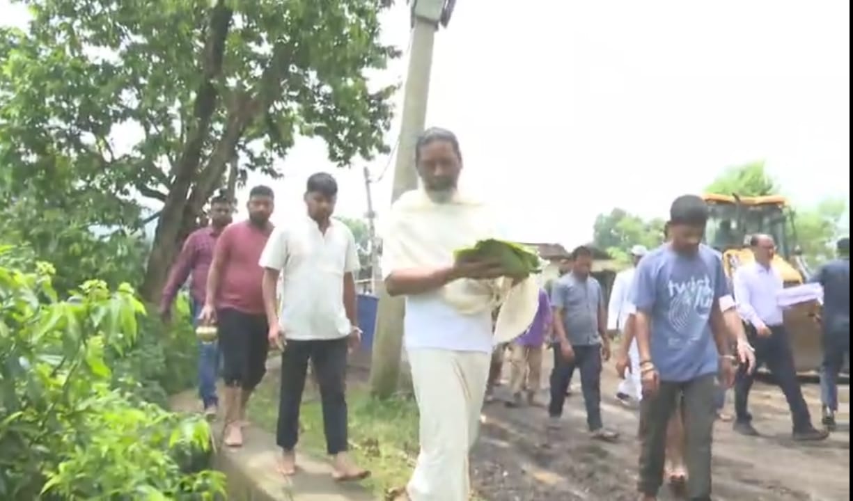 दिशोम गुरु शिबू सोरेन के श्रद्धाकर्म के आज छठे दिन अपने परिजनों के संग स्थानीय परंपरागत विधि से श्रद्धा क्रिया करते हुए मुख्यमंत्री हेमंत सोरेन।