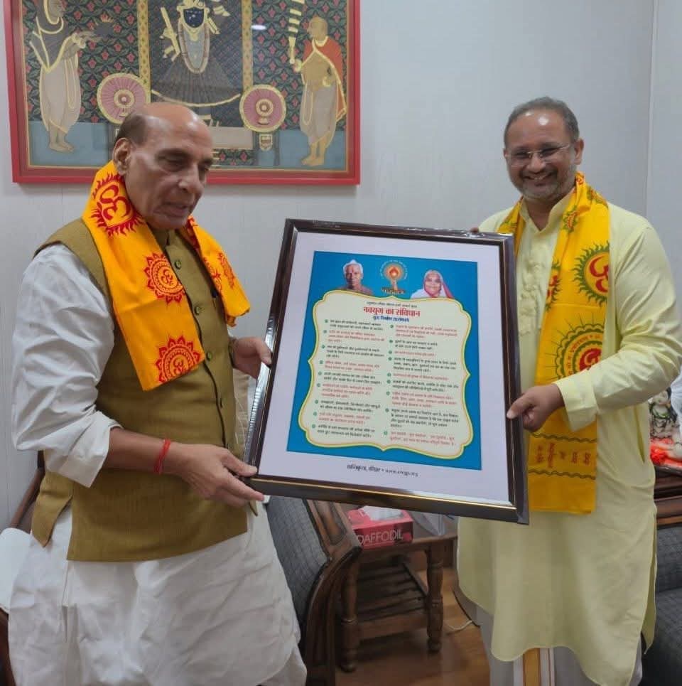 दिल्ली प्रवास के क्रम में देव संस्कृति विश्वविद्यालय के प्रतिकुलपति एवं अखिल विश्व गायत्री परिवार के युवा प्रतिनिधि डॉ. चिन्मय पंड्या ने रक्षा मंत्री राजनाथ सिंह से की सौजन्य भेंट ।